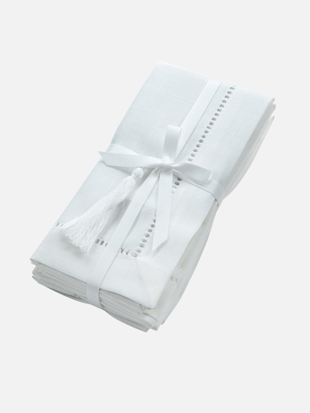סט של 4 מפיות בד מעוצבות במראה קלאסי ובטקסטורת מיוחדת ועדינה. הסט ארוז בחבל קשירה ומושלם לאירוח וגם כמתנה.